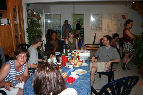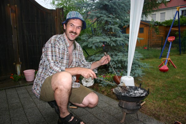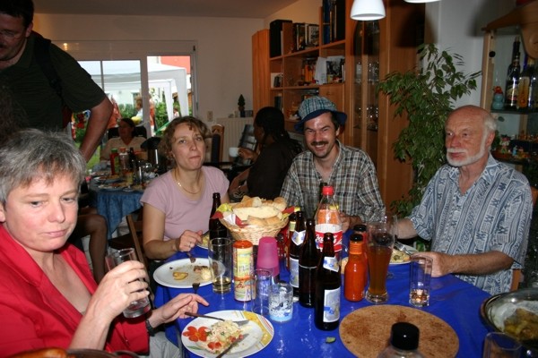 Aufgrund der beiden Hochzeiten (Vera & Enrique, Rosalba & Dieter) im Sommer 2006 gab es ausnahmsweise nur eine Sommerfeier: am 22./23. Juli. Und - schwupss - hatten wir Regen und sogar Hagel! Vor lauter "Aufregung" haben wir dann auch noch vergessen Fotos zu machen. Obwohl das Zeltstangenfesthalten bei Hagel und - als das zunehmend aussichtslos wurde - Zeltabbauen bei Regen dankbare Motive gewesen wären... Dankenswerterweise hat Erik ein paar Fotos gemacht: